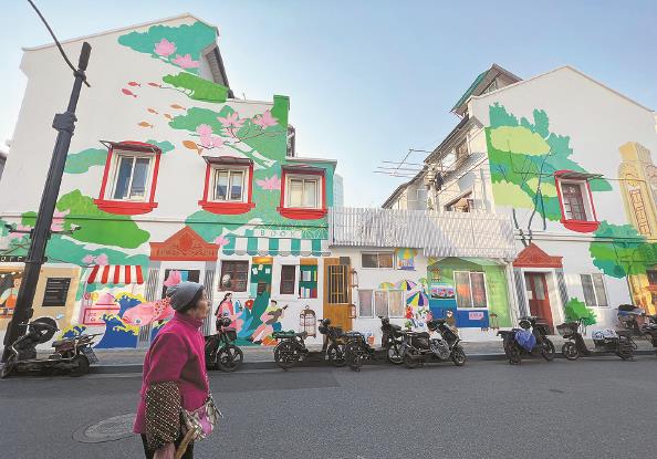重慶北路墻繪講述江陰路街區(qū)的前世今生 記者 周馨 攝