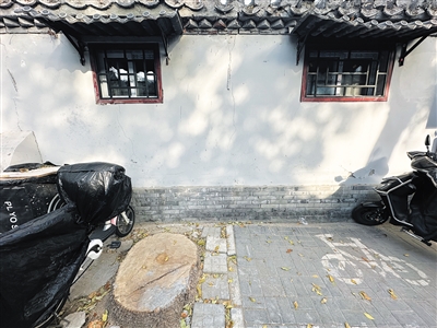 11月,永恒胡同11號(hào)院門口只剩下白蠟樹(shù)的樹(shù)樁。新京報(bào)記者 慕宏舉 攝