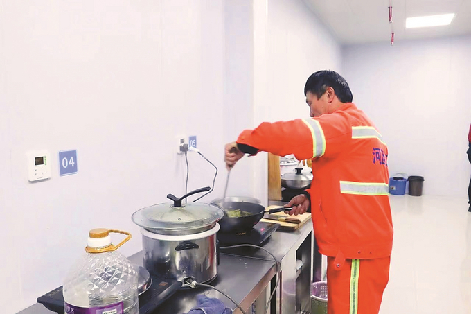 首先是解決環(huán)衛(wèi)工人吃飯的問題。河西建環(huán)征求意見時,超八成環(huán)衛(wèi)工人提出希望能自己燒飯。2023年10月,企業(yè)先后投入二十幾萬,在原來規(guī)劃小賣店的位置對水、電、地下管線等進行全面改造,建設公共廚房,并為“每家每戶”劃定使用區(qū)域。