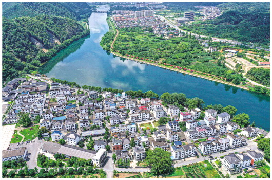 ▲在浙江省衢州市開化縣拍攝的錢塘江源頭河——馬金溪沿岸金星村。當(dāng)?shù)刈畲笙薅鹊乇A袅饔驗(yàn)┑貫┝?,將“固?綠岸+慢道”結(jié)合建設(shè),帶動鄉(xiāng)村旅游和民宿經(jīng)濟(jì)大力發(fā)展(2023年8月2日攝)。新華社記者 黃宗治 攝