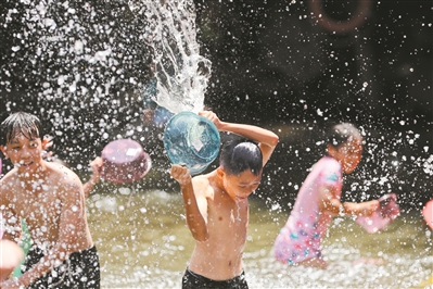 孩子們快樂(lè)地戲水。
