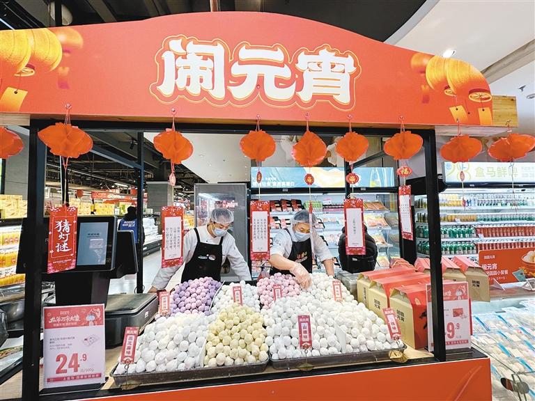 2月22日,西安市一家生鮮超市內(nèi)的元宵柜臺。首席記者 軒轅楊子 攝
