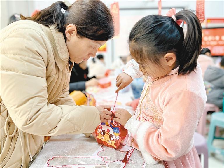 小朋友在大人的幫助下認真制作花燈 記者 王甜甜 攝