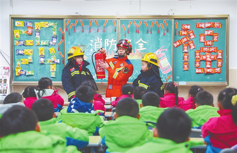 2月26日,南昌市東湖區(qū)消防救援大隊(duì)隊(duì)員來(lái)到南昌市育新學(xué)校,開展“開學(xué)第一課消防安全進(jìn)校園”活動(dòng)。記者 張翰林 攝