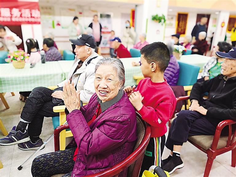 3月5日,銀川市金鳳區(qū)長城中路街道花樣年華社區(qū)聯(lián)合共建單位寧夏孝慈園養(yǎng)老服務(wù)中心、博苑花樣年華幼兒園開展“春日學(xué)雷鋒 真情暖夕陽”活動。圖為花樣年華社區(qū)小志愿者看望養(yǎng)老院老人。記者 智慧 攝