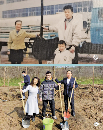 圖①:1999年春,魏文芳(左一)和家人種下第一棵樹時的合影。受訪者供圖