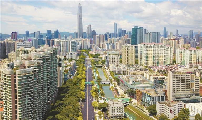 新洲河畔的紅樹碧道是福田首條都市型碧道,全長約7.8公里,與北部山林生態(tài)系統(tǒng)和南部海灣生態(tài)系統(tǒng)聯(lián)通,形成通山達海的“山海綠廊”。(記者 楊浩翰 攝)