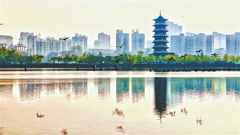 4月7日,河南省柘城縣容湖國(guó)家濕地公園旭陽(yáng)初照,薄霧繚繞,湖面上鷺鳥飛舞,景色一新。近年來(lái),該縣致力打造高品質(zhì)城市綠化空間,讓群眾享受到自然、和諧、生態(tài)的園林綠化建設(shè)成果。(張子斌 攝)