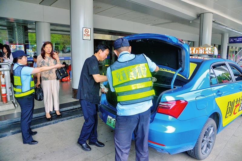 南寧市交通執(zhí)法支隊(duì)執(zhí)法人員在執(zhí)法過(guò)程中主動(dòng)協(xié)助旅客搬運(yùn)行李。黃維業(yè) 攝