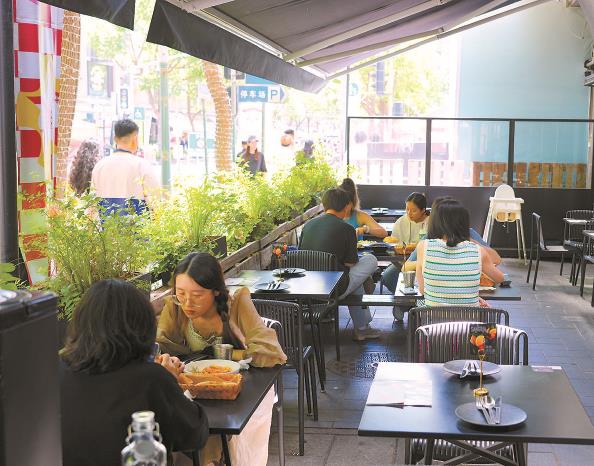 最近,申城暖陽高照,氣溫一路上升。陽光慷慨地照耀在大地上,穿透每一排行道樹,在建筑物上打出斑駁的影子。遇上這樣的好天氣,擺在室外的桌椅總是格外搶手。端一杯咖啡,約三兩好友,臨街而坐,曬曬太陽,吹吹小風,看看路上來來往往的人和風景,是許多消費者中意的初夏生活。