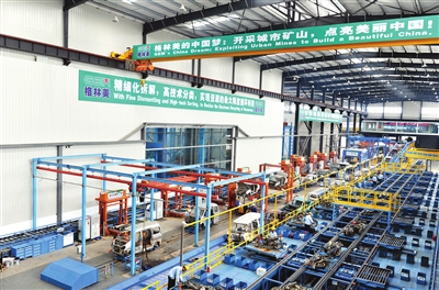 在這里,一輛報(bào)廢汽車被送上流水線,僅15分鐘就從整車變?yōu)樗槠?。破碎后的殘?jiān)杆龠M(jìn)入分選流水線,自動(dòng)分類回收銅、鋁、塑料等材料,經(jīng)專業(yè)化處理可節(jié)能六成、節(jié)材七成,為下游企業(yè)提供低耗能、低排放、高效率的資源保障。