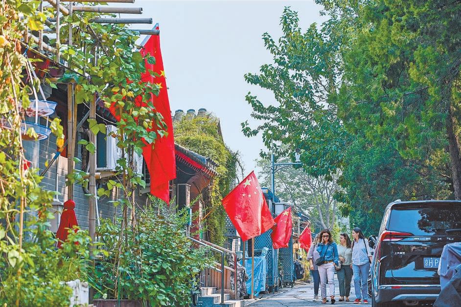 9月24日,記者在西城區(qū)西交民巷社區(qū)東中胡同看到,家家戶戶已經(jīng)掛起五星紅旗,迎接國慶佳節(jié)到來。實(shí)習(xí)記者 金瑤 攝