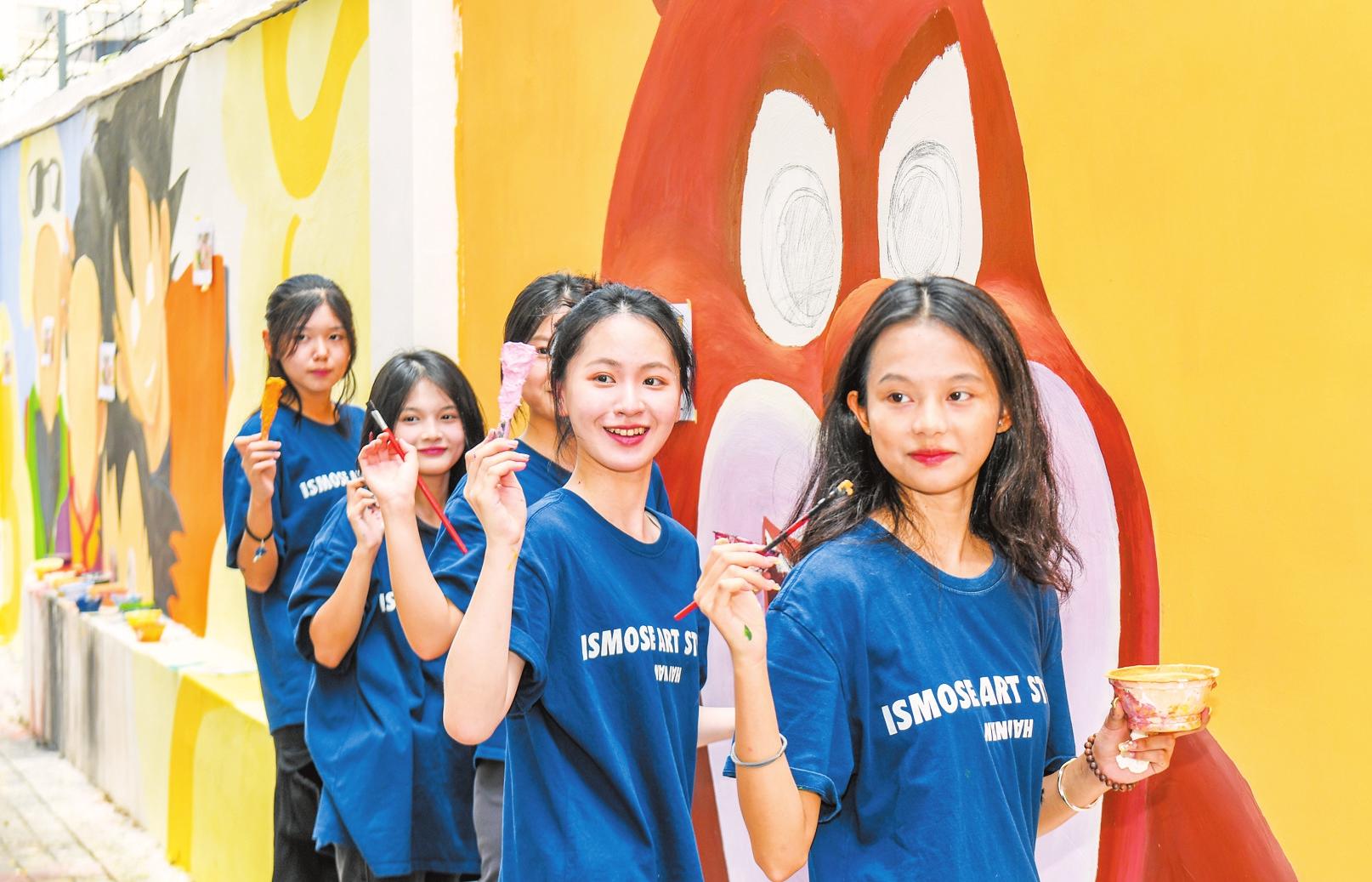 “作為一名海南人,能夠用畫筆為家鄉(xiāng)服務(wù),我覺(jué)得十分自豪?!编嵥佳攀菂⑴c此次彩繪的藝術(shù)愛(ài)好者之一,她表示,新潮有趣的墻繪能夠吸引更多人來(lái)打卡,在每一幅墻畫前感受不一樣的文化。