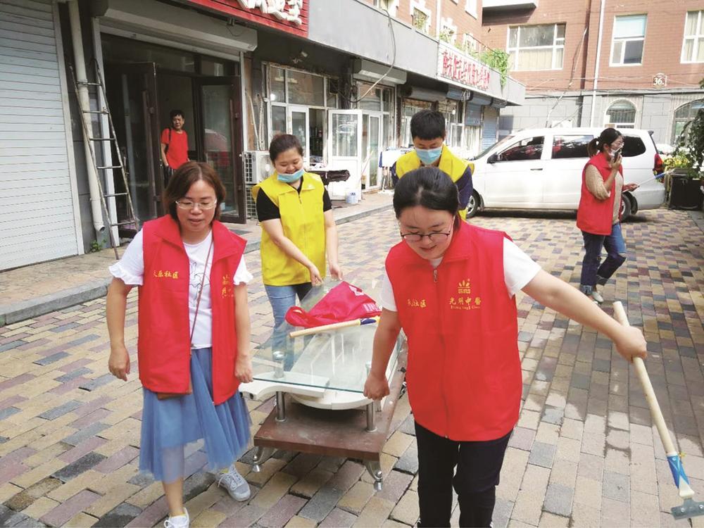 南關(guān)區(qū)天樂社區(qū)組織志愿者對老舊散小區(qū)環(huán)境衛(wèi)生進(jìn)行清理。(資料圖片)