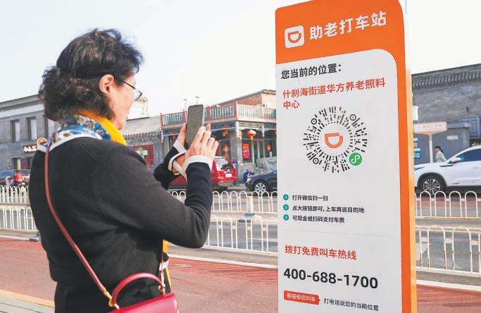 老年人通過助老打車站標(biāo)識牌方便快捷叫車。