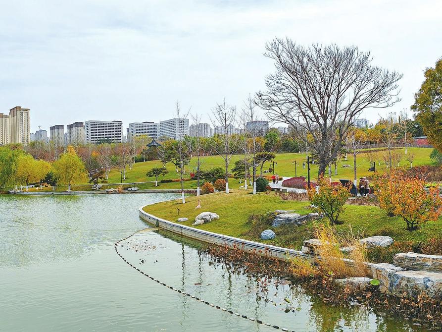 近日,太原雙塔寺景區(qū)內,各類樹木與清澈的湖水、古色古香的仿古建筑相映成趣。游客漫步其間,仿佛置身于一幅色彩斑斕的畫卷之中,沉浸式感受生態(tài)之美與自然之趣。楊家煒 攝
