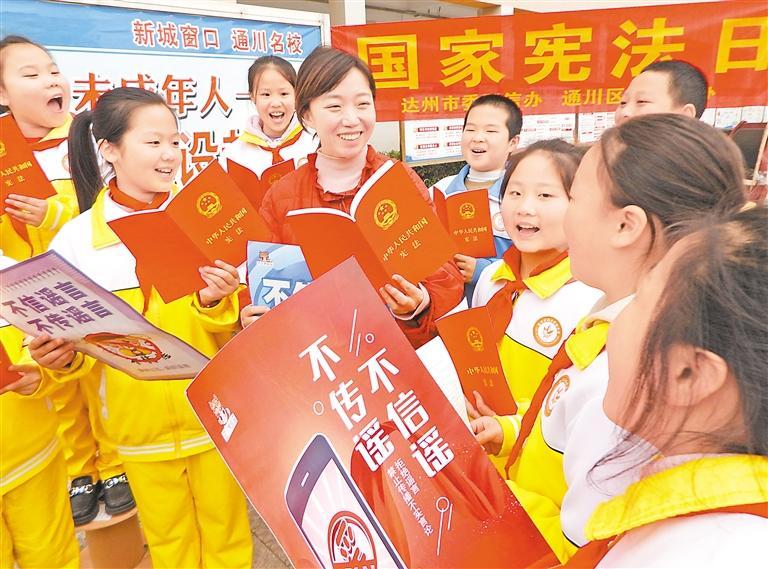 12月3日,在四川省達州市通川區(qū)羅江鎮(zhèn)魏興實驗學(xué)校,普法志愿者給學(xué)生講解憲法知識。今年12月4日是第十一個國家憲法日,各地開展形式多樣的活動普及憲法知識,宣傳法治觀念。2024年“憲法宣傳周”活動主題為“大力弘揚憲法精神,推動進一步全面深化改革”,時間為12月1日至7日。新華社發(fā)