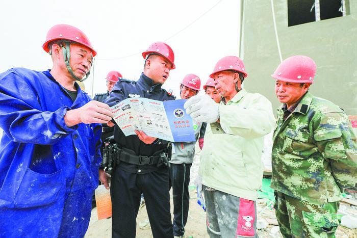民警向建筑工人講解毒品的危害。