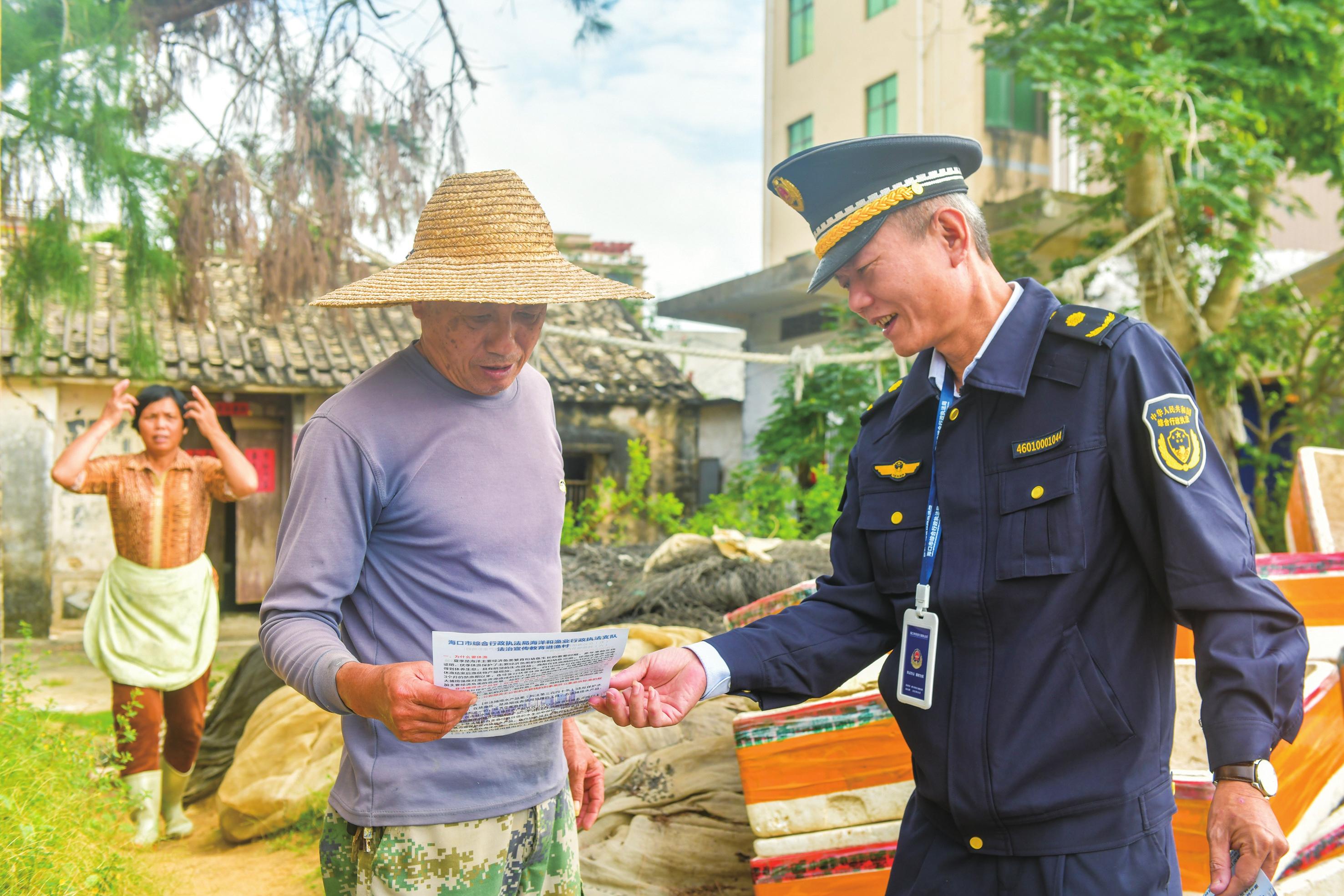 發(fā)放漁業(yè)安全生產(chǎn)宣傳資料。(圖片均由李鑫拍攝)