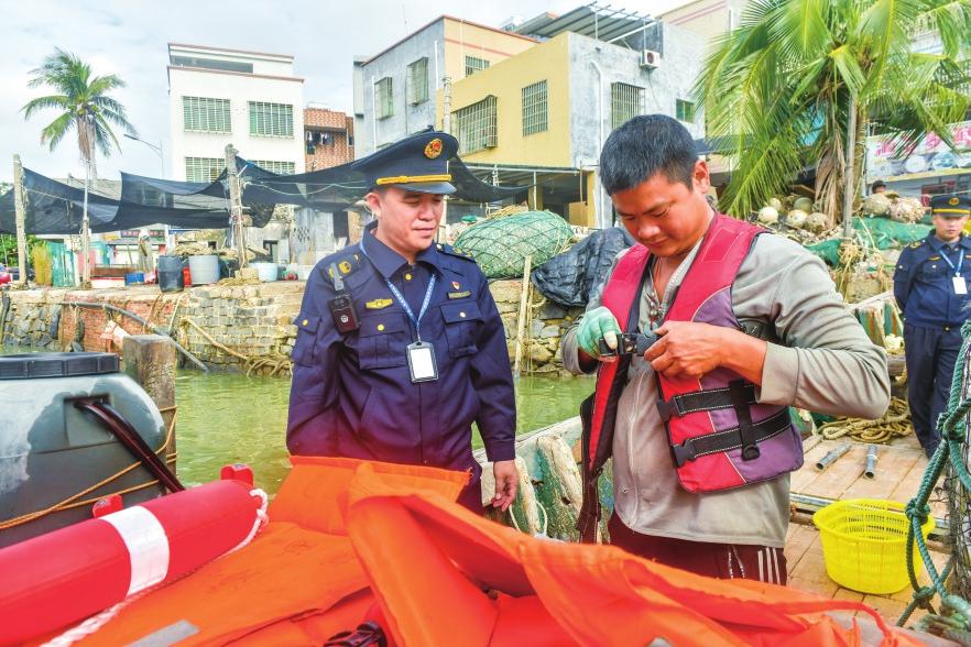 指導(dǎo)漁民規(guī)范使用救生衣。