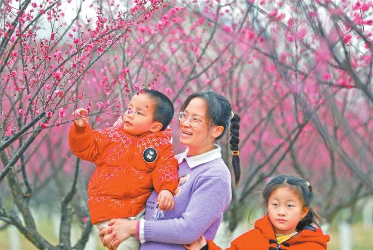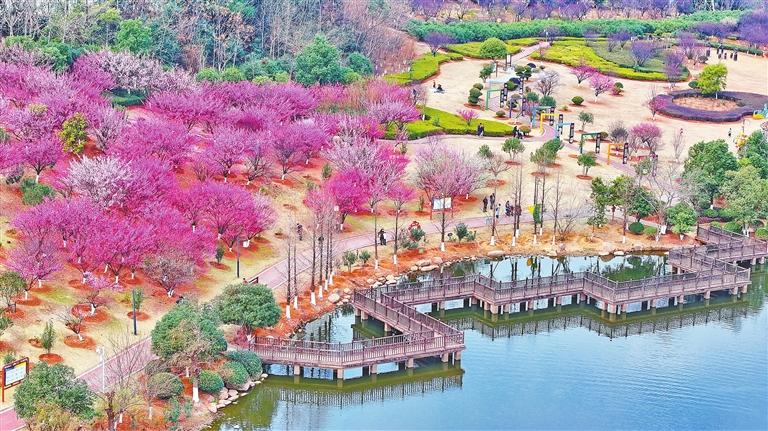 1月31日,贛州經開區(qū)金鳳梅園紅梅盛放,游人如織,城市建筑與濕地景觀相融相襯,美不勝收。通訊員 朱海鵬攝