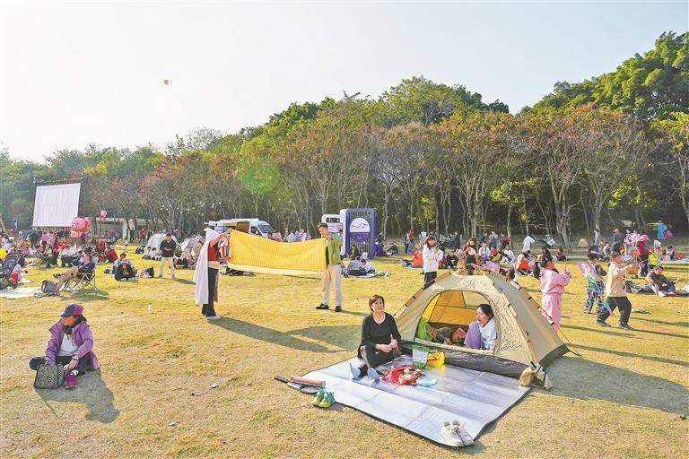 春節(jié)假期,市民在蓮花山公園露營(yíng),享受陽光。記者 嚴(yán)文婷 攝