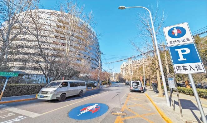 改造后的碧湖居南路設(shè)置路側(cè)停車位,增加自行車優(yōu)先指示牌,規(guī)范交通出行。