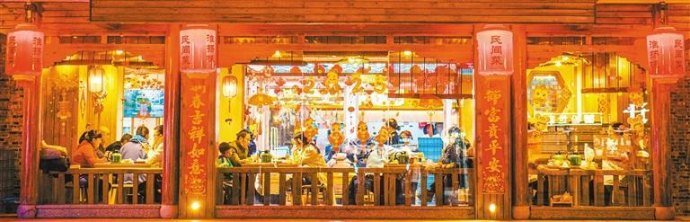 2月20日,江蘇省揚(yáng)州市廣陵區(qū)東關(guān)街,市民和游客在品嘗當(dāng)?shù)孛朗场=陙?,該市持續(xù)打造集夜食、夜購、夜游等于一體的“夜間經(jīng)濟(jì)”精品街區(qū)。徐江海 攝(中經(jīng)視覺)
