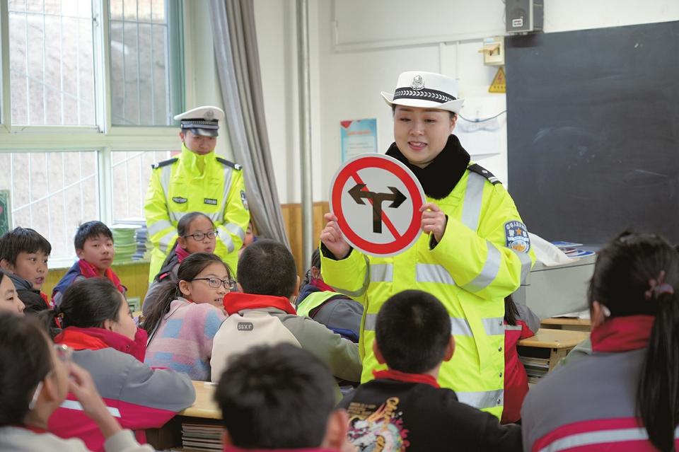 知危險會避險,交通安全進校園。3月3日,太原市公安局交警支隊迎澤一大隊民警謝蕾在迎澤區(qū)港道小學開展安全教育進校園活動,以互動識標、圖文漫畫等多種形式,多維度宣傳學生步行、騎行、乘車交通安全常識,提升學生交通安全意識和自我防護能力。任偉國 攝