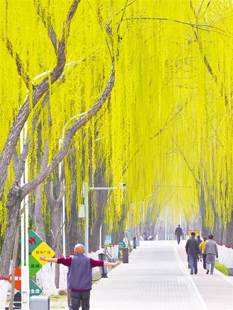 4月5日,銀川唐徠渠畔垂柳依依,市民漫步其間,享受大好春光。 記者 左鳴遠(yuǎn) 攝