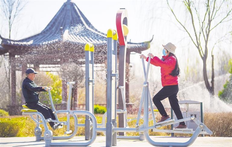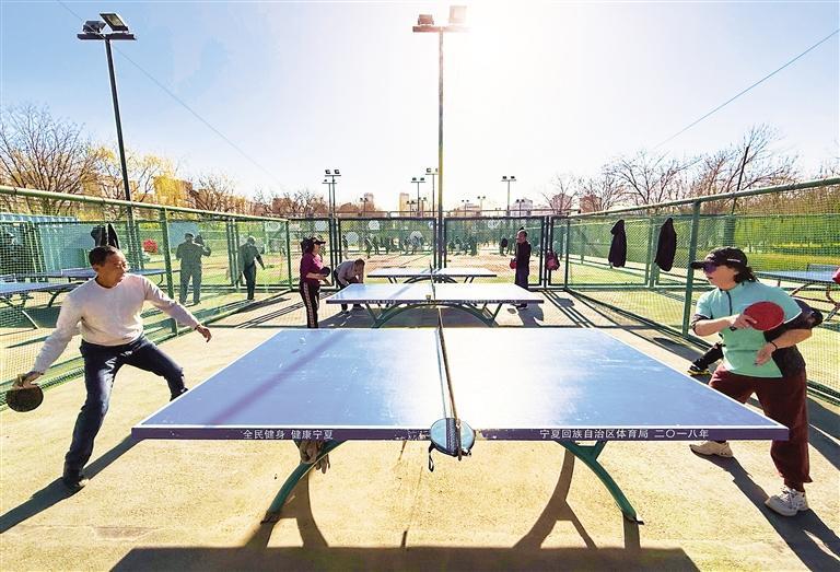 4月5日,市民在銀川毓秀公園打乒乓球。當(dāng)日,該公園迎來許多晨練市民,運(yùn)動(dòng)的人們成為假日清晨的亮麗風(fēng)景。記者 馬楠 攝