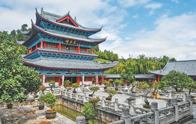 “一座土司府,半部民族史”。木府萬(wàn)卷樓前的這10個(gè)字,將邊地古城各民族交往交流交融的故事娓娓道來(lái)。獅子山拱衛(wèi)、護(hù)城河縈繞,木府的選址與布局十分講究。作為麗江木氏土司府的衙署,木府始建于明代,后來(lái)歷經(jīng)多次擴(kuò)建和修繕,形成了現(xiàn)有的建筑群布局,議事廳、萬(wàn)卷樓、護(hù)法殿等沿中軸線依次排開。歷經(jīng)400多年風(fēng)雨的木府,作為麗江古城的重要文化地標(biāo),聆聽(tīng)著各民族百川匯流向前的歷史回響。