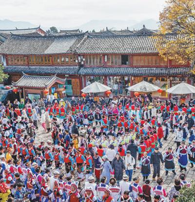 麗江古城涵蓋了作為茶馬古道重鎮(zhèn)的大研古城、從農(nóng)耕文明向商業(yè)文明過(guò)渡的“活標(biāo)本”束河古鎮(zhèn)、有著原生態(tài)納西村落的白沙古鎮(zhèn),融匯了漢族、白族、彝族、藏族、納西族等多民族文化特色。作為一座沒(méi)有城墻的古城,麗江古城以包容與開放的姿態(tài),歷經(jīng)文化的交融與碰撞,源源不斷地孕育出充滿魅力的文化新形態(tài)。