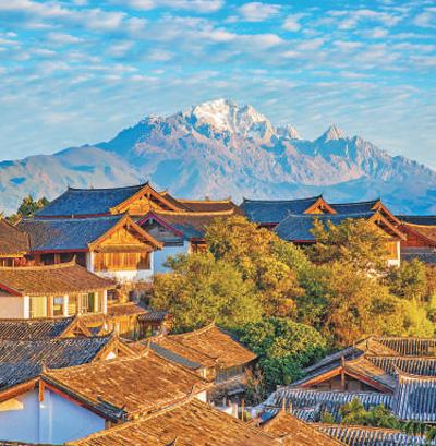 在玉龍雪山的一片銀白映襯下,麗江古城更顯寧?kù)o。
