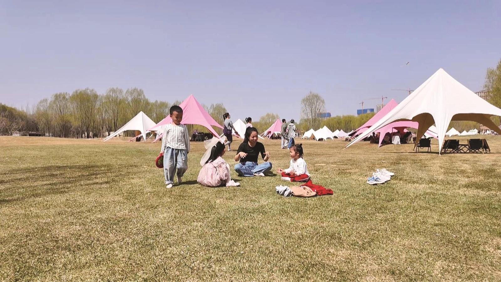 戶外露營(yíng),享受親子時(shí)光(4月6日攝)。 記者 張韶奇 王浩南 攝