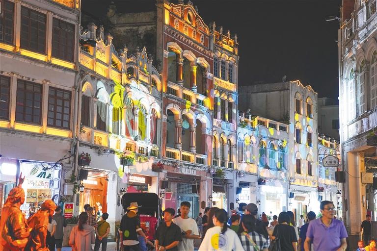 近年來,海口持續(xù)推進(jìn)騎樓老街更新改造,通過燈光亮化、業(yè)態(tài)升級(jí)及文旅活動(dòng),讓老街持續(xù)煥發(fā)新活力。記者 李天平 攝