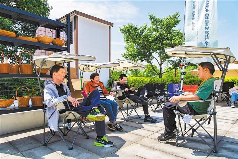 4月26日,浙江省金華市雙龍風(fēng)景旅游區(qū)(金華山)“露營(yíng)之家”基地,游客在體驗(yàn)露營(yíng)裝備。從帳篷和桌椅,到天幕和投影儀,消費(fèi)者對(duì)露營(yíng)裝備的需求日益多樣化。胡肖飛攝(中經(jīng)視覺(jué))