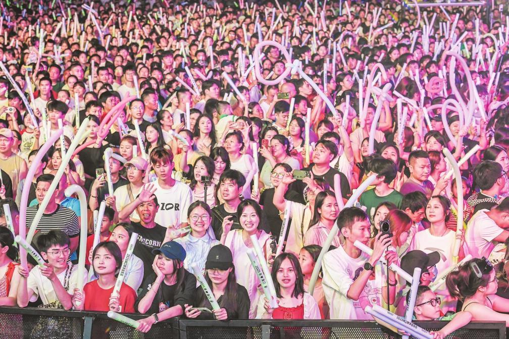精彩的“夸下??凇毕娜詹萜阂魳?lè)會(huì)充實(shí)了市民游客的休閑時(shí)光。海口的文化生活豐富多彩,精神文明底蘊(yùn)深厚。記者 蘇弼坤 攝