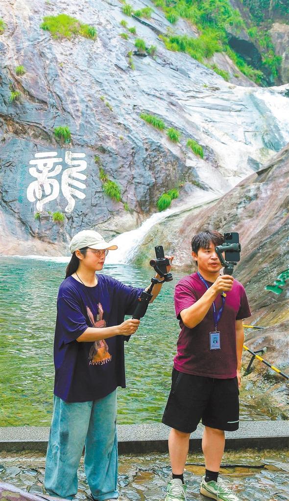 6月9日,江西省廬山市廬山秀峰景區(qū),自媒體從業(yè)者用網(wǎng)絡(luò)直播的方式為游客介紹景區(qū)。韓俊烜攝(中經(jīng)視覺)