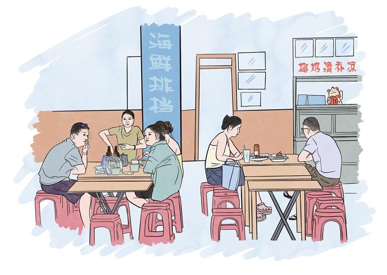 呂旭兵說,來店里吃飯的人有不少本地居民,開放外擺后,一個(gè)老顧客的話讓他動(dòng)容,“他說,‘海鮮在哪都可以吃,我就喜歡這街上的煙火氣?,F(xiàn)在這里變得更熱鬧了,讓我找到了老三亞的感覺’?!?/p>