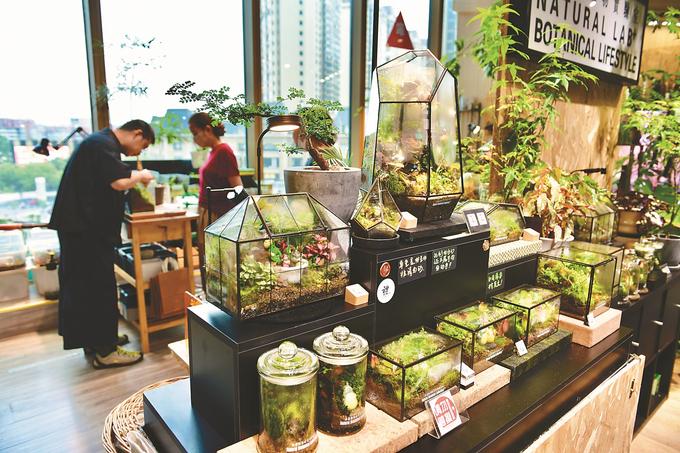 南京一家名為“自然·植物實(shí)驗(yàn)室”的小店,售賣微縮景觀,在方寸之間構(gòu)筑萌趣盎然的自然童話。記者 范俊彥 攝