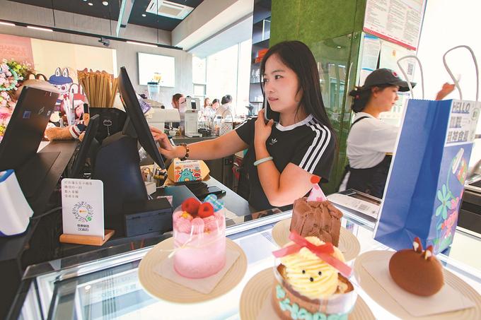 6月10日,徐州文廟歷史文化街區(qū)的怪獸智造蛋糕甜品店,主理人王玉一邊接訂單電話一邊給線下客戶結(jié)賬。這家緊跟時(shí)尚潮流的甜品店,頗受年輕人的喜愛。蒯創(chuàng) 攝(視覺江蘇網(wǎng)供圖)