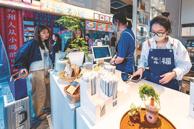 6月8日,蘇州姑蘇區(qū)十全街,95后陳澄開的嘿啰面包店,門庭若市??恐姘焚|(zhì)和十全街人流量,小店開業(yè)兩年,生意持續(xù)紅火。闕明芬 攝 (視覺江蘇網(wǎng)供圖)