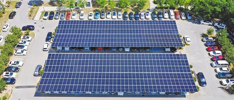 6月13日,新能源汽車在遼寧省沈陽市“光儲充放”一體化項目能源站充電。該充電站年均發(fā)電量約53萬千瓦時,年減少碳排放量約429噸。鄒新江攝(中經(jīng)視覺)
