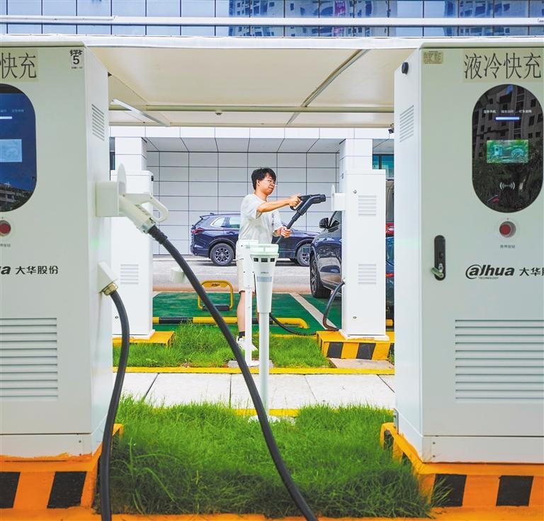 6月23日,市民在江西省撫州市南豐縣琴城鎮(zhèn)為新能源車充電。近年來,該縣加快推進新能源基礎設施建設,讓市民綠色出行更加便捷。謝東攝(中經(jīng)視覺)