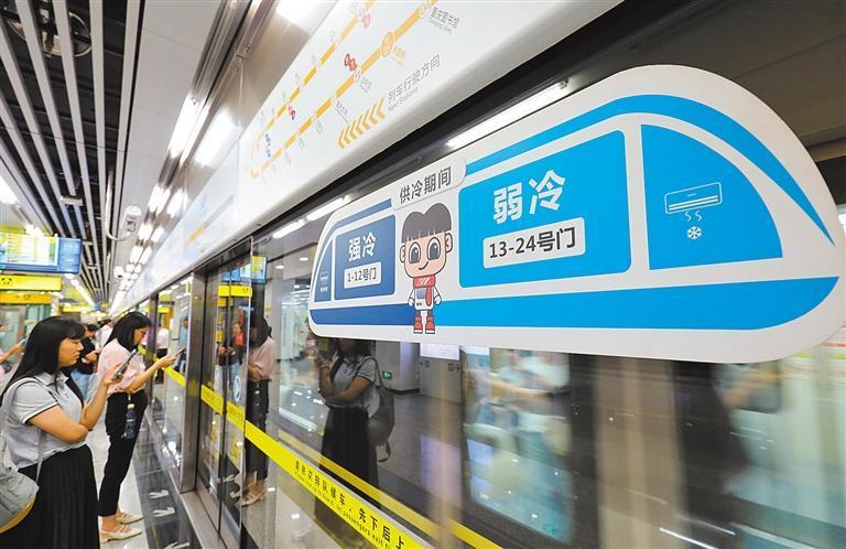 6月19日,重慶市沙坪壩區(qū)一軌道交通車站內(nèi)張貼著醒目的車廂溫度提醒標識。目前,重慶軌道交通線路全面推行“雙溫車廂”服務,在滿足不同乘客冷暖需求的同時降低空調(diào)能耗。孫凱芳攝(中經(jīng)視覺)
