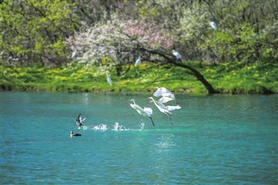 水質澄澈,是河流的靈魂。曾幾何時,汾河蒙塵。而今,清流滌蕩污濁,終于喚醒了沉睡的見證者——被譽為“活體水質檢測器”的桃花水母,在四期水域輕盈旋舞,近乎透明的傘蓋如精靈般浮動。清波之下,是萬物生長的秘境;碧水之上,是羽翼的樂園。天鵝、白鷺、蒼鷺、斑嘴鴨……上百種鳥兒于此棲息,它們翅膀的每一次扇動,都是對汾河生態(tài)最真實的肯定。騎行者在綠道上飛馳,身影融入兩岸的錦繡;游人漫步木棧道,步伐隱沒在流動的詩意里;沿岸居民推窗見綠,汾河終于找回了它清亮的歌喉。