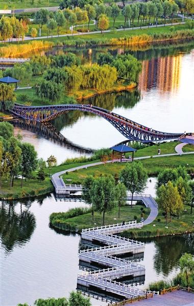 風光旖旎,是河流的容顏。順流而下,汾河四期如一幅水墨長卷在城北徐徐鋪展。雁丘園內,當年元好問筆下“問世間、情是何物”的慨嘆,如今沉淀為濕地間婉轉的鳥鳴與蘆葦迷宮的低語。流水潺潺,棧道曲折,每一處彎折都藏著靜謐的驚喜。再往前行,豁然開朗處,“小三亞”的金色沙灘在陽光下閃耀,孩子們追逐嬉戲,帳篷如花朵點綴在碧水金沙之畔,城市人心中向往的“遠方”觸手可及。