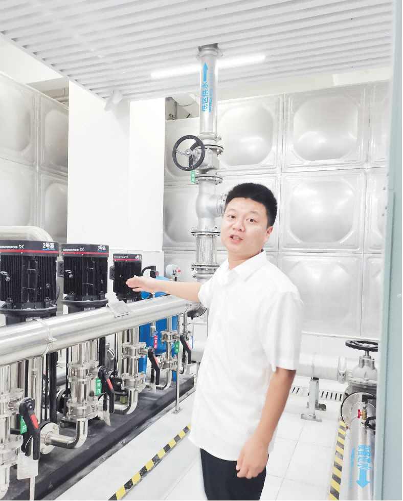 長沙水業(yè)集團供水公司工程建設部工作人員石璧生說,鉑宮小區(qū)水表入戶改造時建設的供水房設備更智能。記者 劉軍 攝