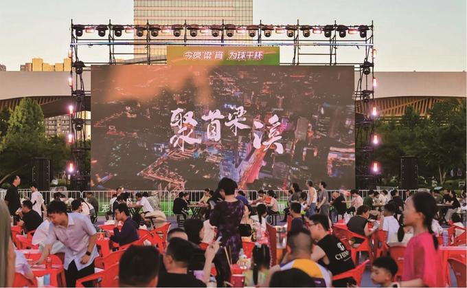 大屏幕前,人潮涌動,歡呼聲響徹云霄,在無錫江南古運河畔,“蘇超”“第二現(xiàn)場”上演著堪比賽場的狂熱?!疤K超”的爆火,讓這個夏天格外熱鬧,梁溪多處化身足球狂歡勝地,惠山映月里祠田廣場、運河匯水上舞臺、崇安寺二泉映月廣場、清名橋廣場……市民游客在大屏前暢聊戰(zhàn)術(shù),燒烤、啤酒、小龍蝦、各色小吃琳瑯滿目,夜色之下,巨幕與美食繪就動感十足的消費熱力圖。